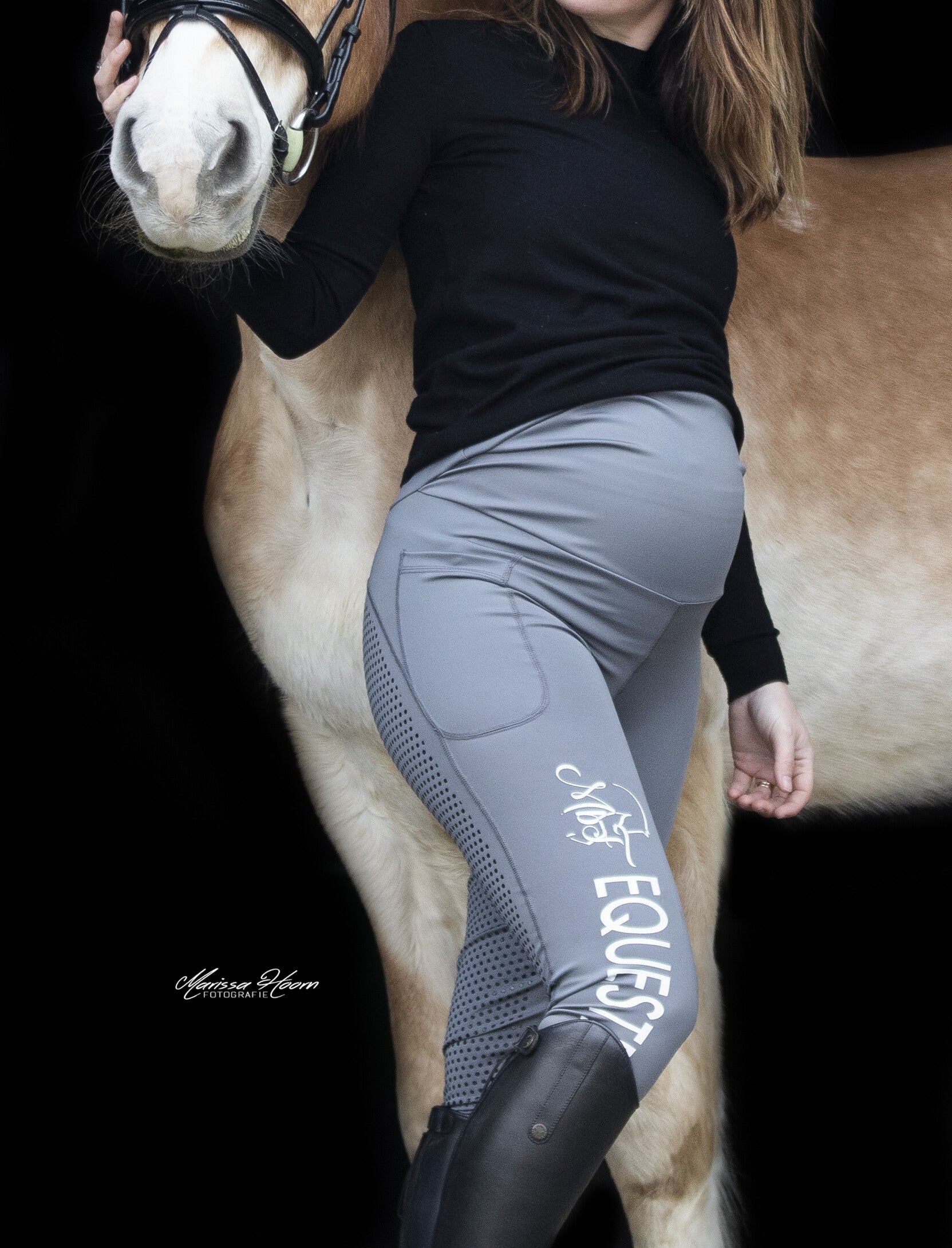 MbF Equestrian zwangerschap rijlegging is gemaakt van 90% micro polyester en 10% lycra. Super zacht en elastisch en voelt aan als een second skin. Deze zwangerschapsbroeken zitten heerlijk geven vrijheid en is voorzien van een fullseat silicone achterkant en een phone pocket.